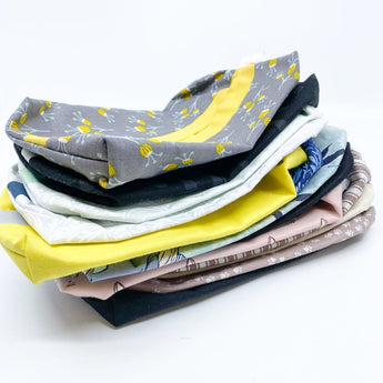 The Boaty Hankit includes a fabric box to store the tissues and a matching, reversible basket to hold used tissues until the next wash. This way, we prevent tissues from lying around or ending up in the trash.