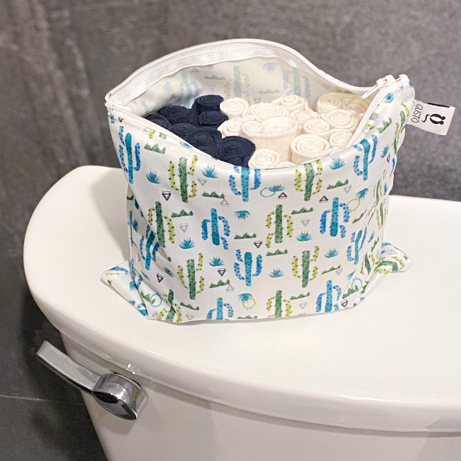 avoir sous la main des débarbouillettes ou lingettes humides (wet wipes réutilisables et portatives)