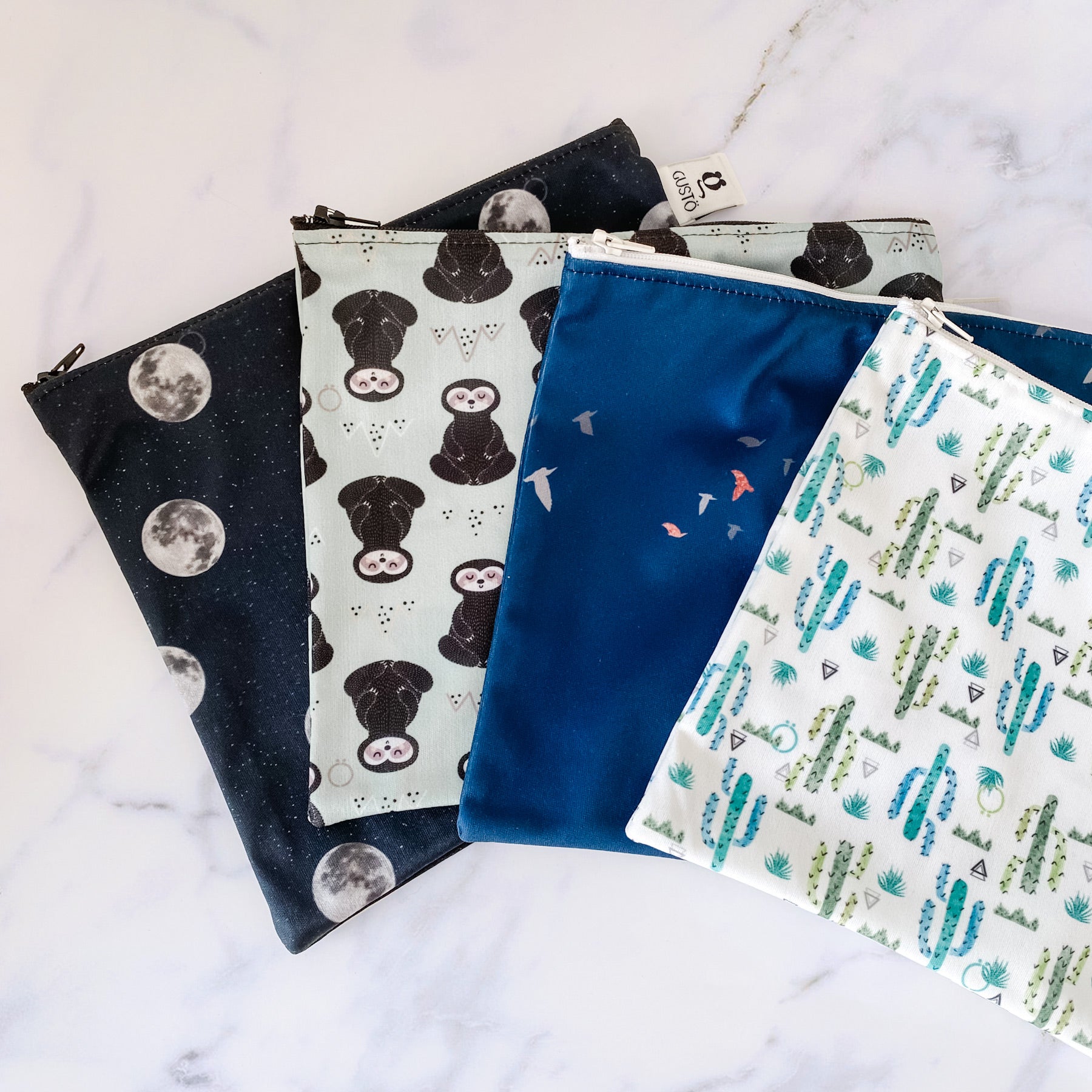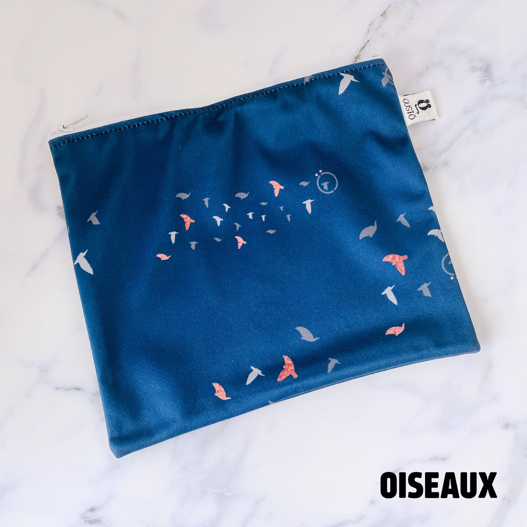 Le plus grand de nos sacs à collation réutilisables. Pour les sandwichs, les viennoiseries, les grosses collations ou tout ce que vous voulez emporter en voyage ou en sorties.