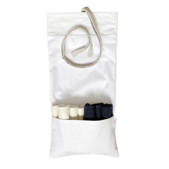 You can easily hang your carrying bag by tying a knot using the two straps (on a hook behind a public bathroom door, in the car, on a tree branch, etc.). The use of the rolls remains hygienic because you can place them directly in the waterproof bag until you wash them.